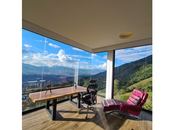 Exclusiva casa campestre en Medellín, vía Las Palmas, Medellín, en prestigiosa urbanización con portería 24h. Acceso rápido al Aeropuerto JMC y cerca de Mall Lemont, Indiana, con vista panorámica a Medellín, rodeada de naturaleza y privacidad. Con 1.100 m2 construidos en lote de 3.800 m2, cuenta con acabados de lujo, pisos y grifería italiana, vidrios antiruido, domótica y sonido Bosé.