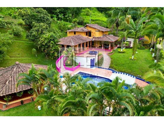 El lote cuenta con 25.600 m2 y una construcción aproximada de 700 m2. La casa principal dispone de 6 alcobas, 5 baños, sala de TV, 2 salas, sala de billar, cocina, patio de ropas, corredores amplios y un patio con fuente de agua. También encontrarás un quiosco con baño, zona de BBQ, posetas y fogón de leña. Cuenta con piscina, cancha de microfútbol, amplias zonas verdes, bodega para materiales y herramientas, además de parqueadero al aire libre para 12 vehículos.